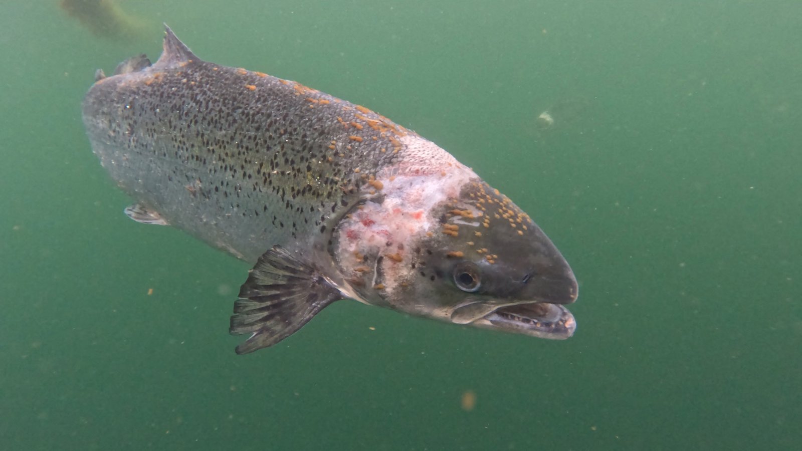 Photo of salmon covered in lice at Aird